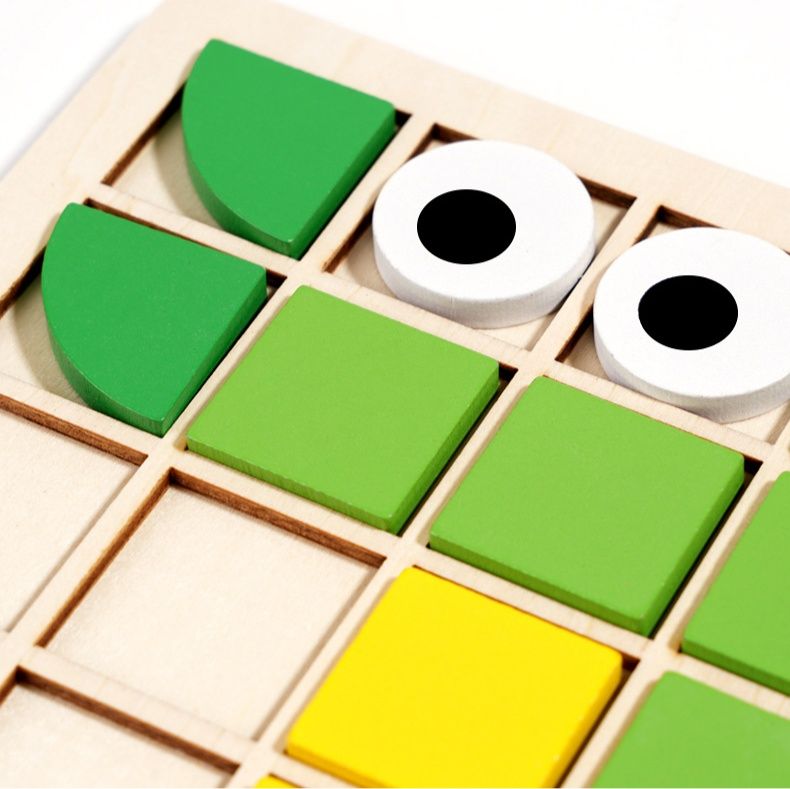 マス目に様々な形のブロックを配置することで、空間認識能力や集中力、色彩感覚が自然と身につきます。