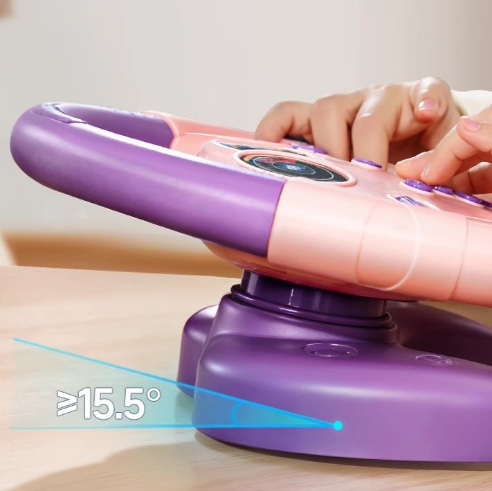 360度回転するハンドルに加え、複数のボタンやスイッチが配置されており、押すたびに様々な音や光が楽しめます。