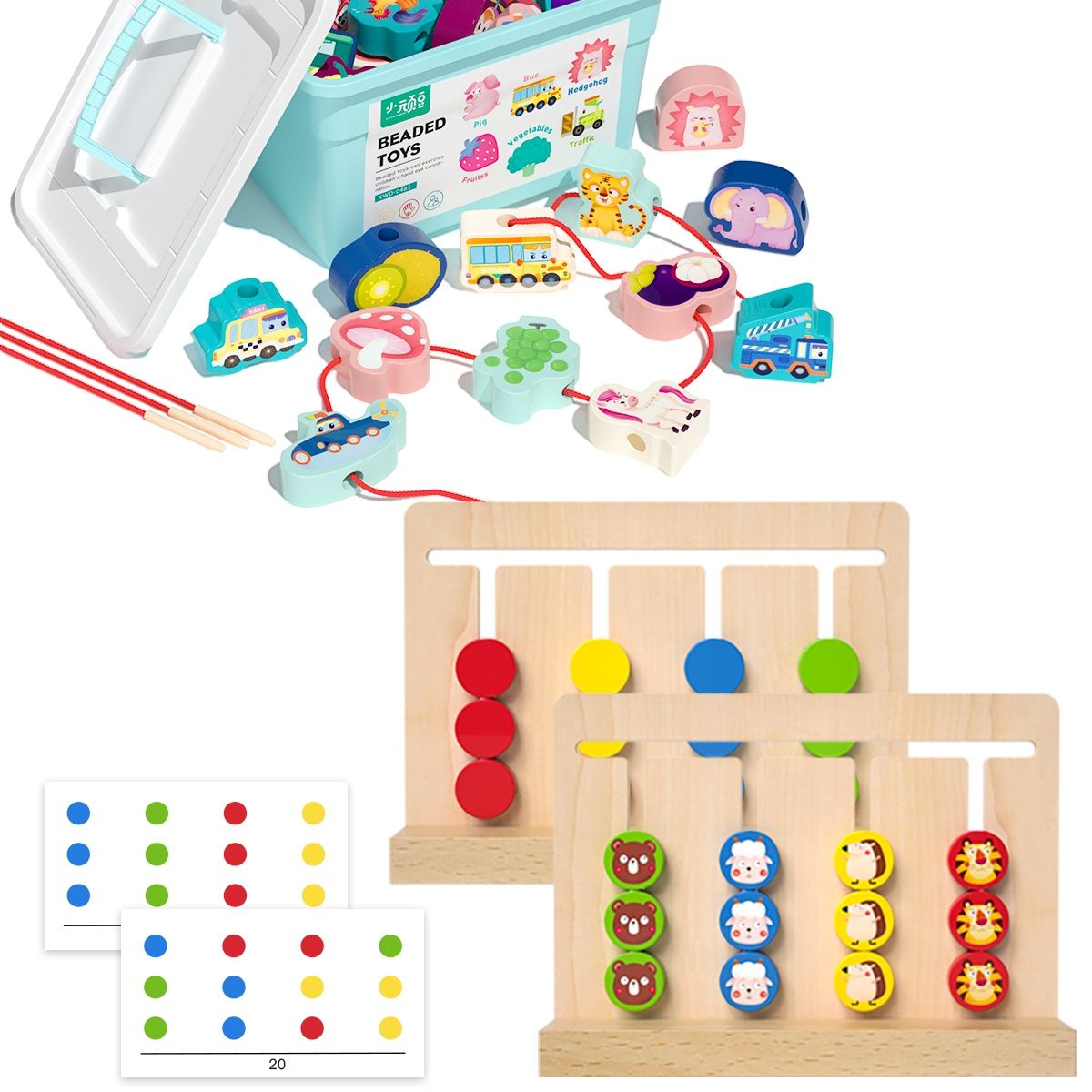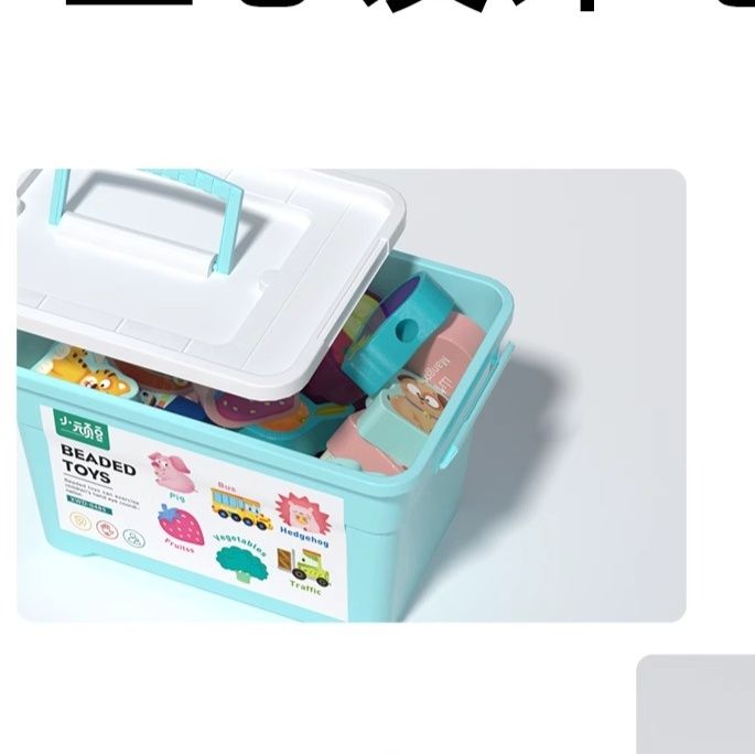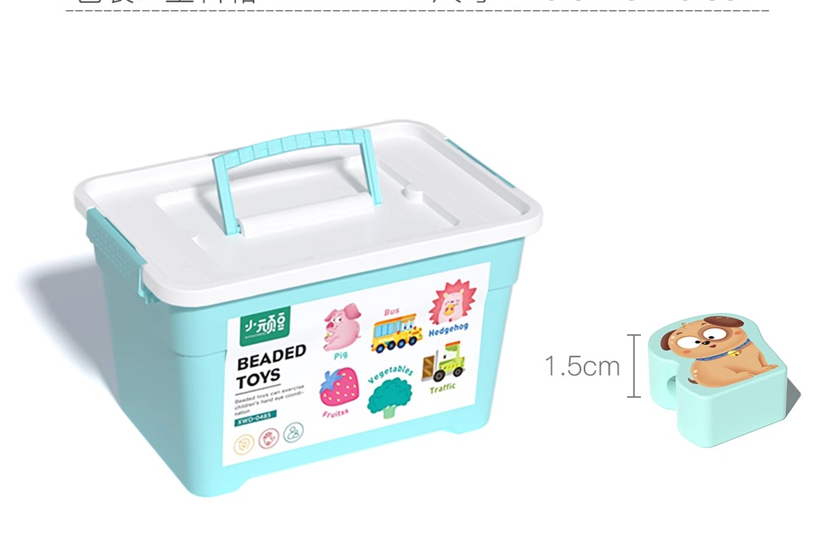 可愛い動物や乗り物の形をした木製ブロックに紐を通して遊ぶ知育玩具です。 手先の器用さや集中力を育みながら、動物や乗り物の認識力も向上させます。 持ち運びに便利な収納ケース付きで、整理整頓の習慣も身につく優れたブロック教材です。 知育玩具としての楽しさと学びを兼ね備えた、幼児の成長をサポートするブロックセットです。