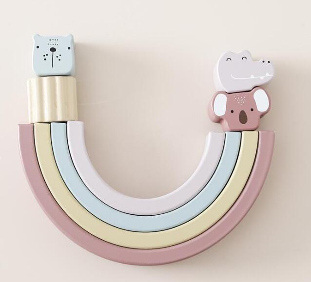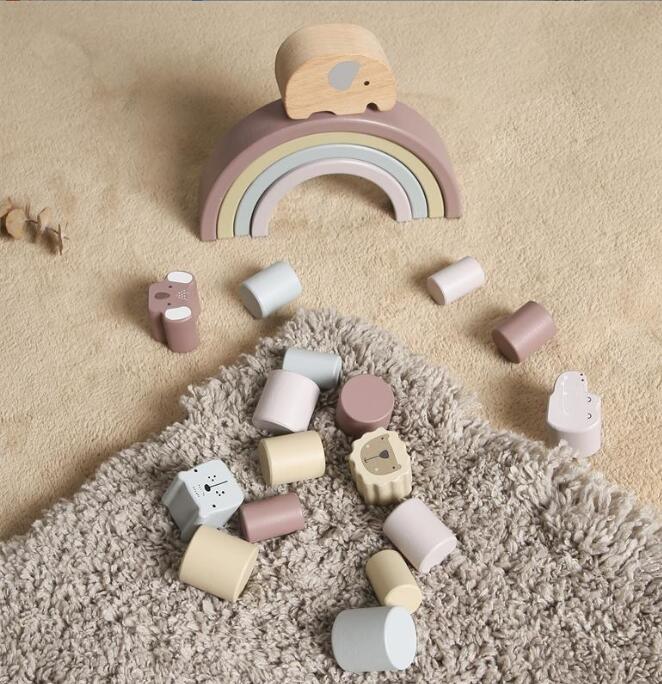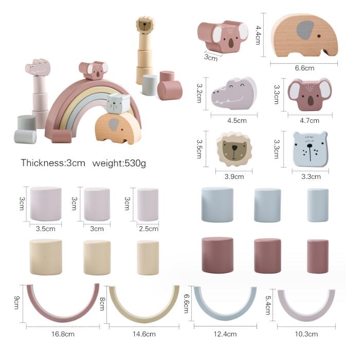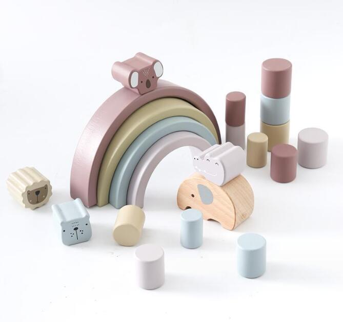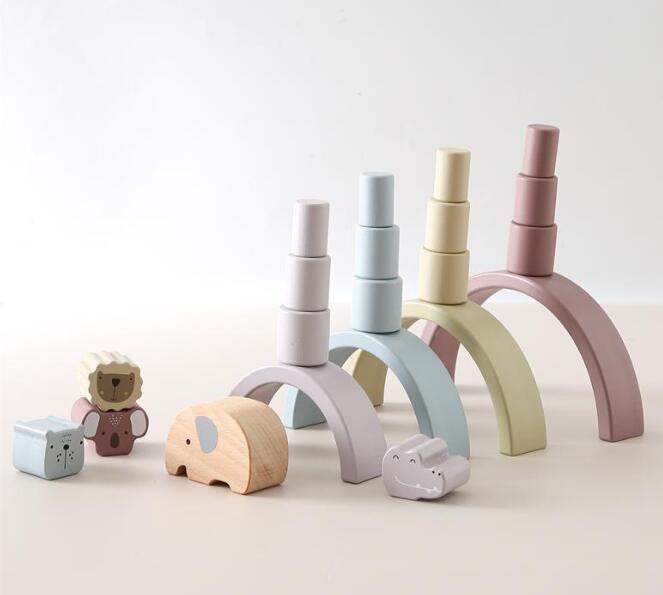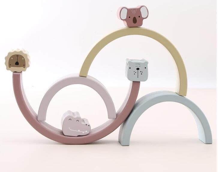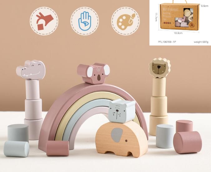可愛い象や虹のアーチ、動物積み木で自由に遊びながらバランス感覚を養えます。