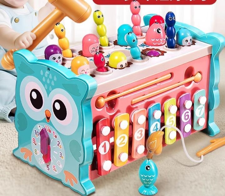 0歳から楽しめる知育玩具として、可愛い海の生き物たちを釣り竿で釣り上げたり、叩いて遊べる多機能玩具です。